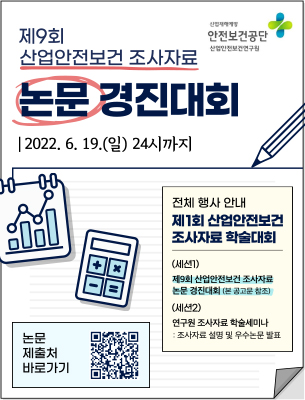 학회 학술대회에 꾸준히 지원해주고 있는 산업안전보건연구원에서 2022년 논문경진대회를 개최한다고 합니다.
