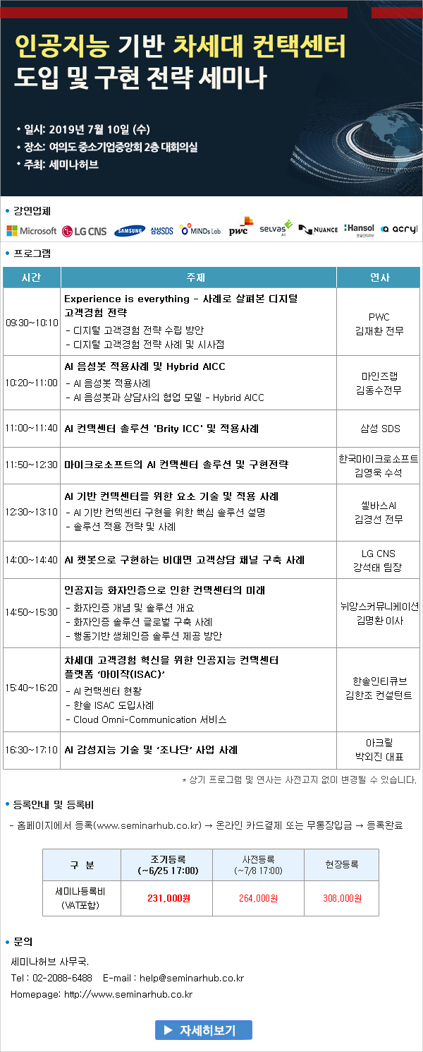 [홍보요청] 7월 인공지능 컨택센터 세미나 홍보 요청의 건(연사최종확정)