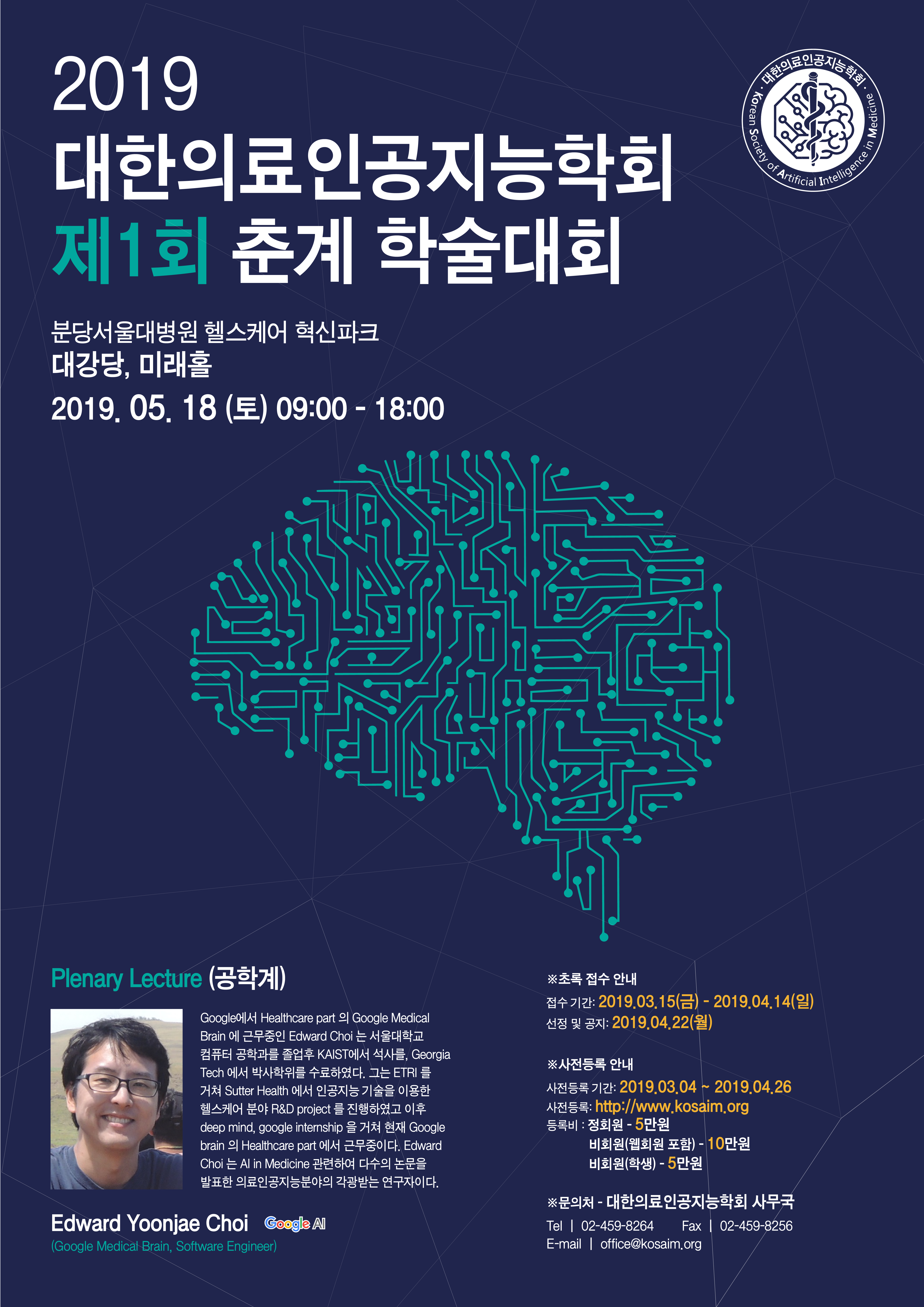 1) 2019 제1회 대한의료인공지능학회 춘계 학술대회